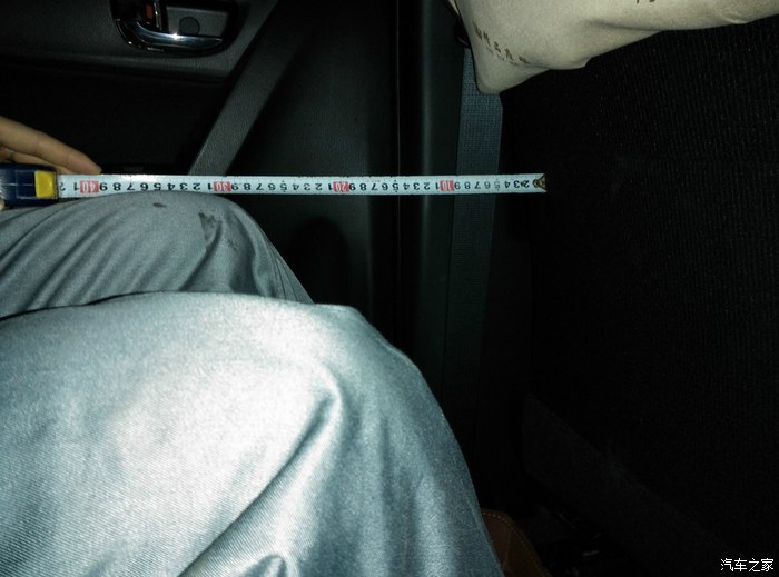调整好驾驶座位的后排空间,由于是自己一边拍摄一边测距的,效果不是那么专业,各位将就着看个大概吧。拳头的那张座椅倾斜的比较厉害,织物没有完全包住座椅,还有空间,总之后排腿部空间有三拳还多几个手指的距离。