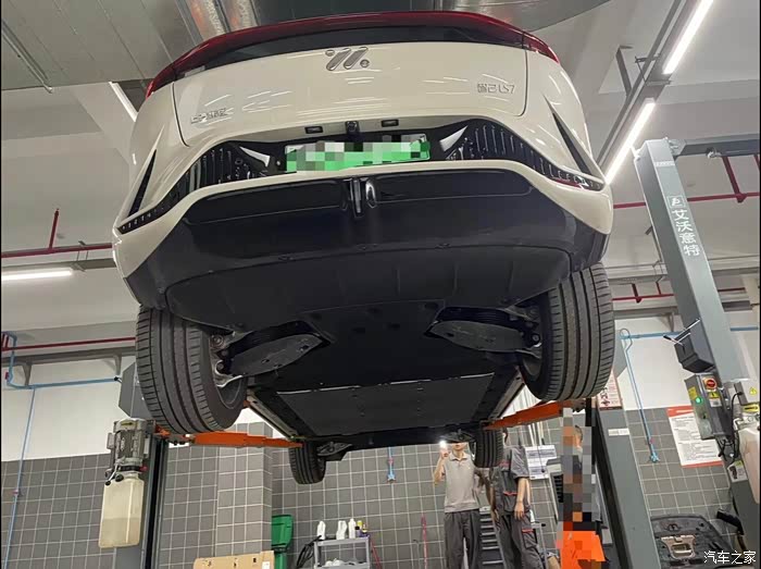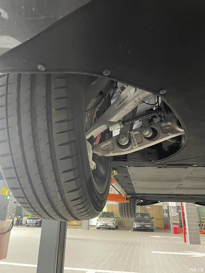 首先整体看看底盘,整体还是有底板的防护,非常厚实,开车时大家还是不用太担心对底盘的剐蹭,我看有些车友还在问需不需要加装防护板,大家看完图片可以再考虑考虑。
