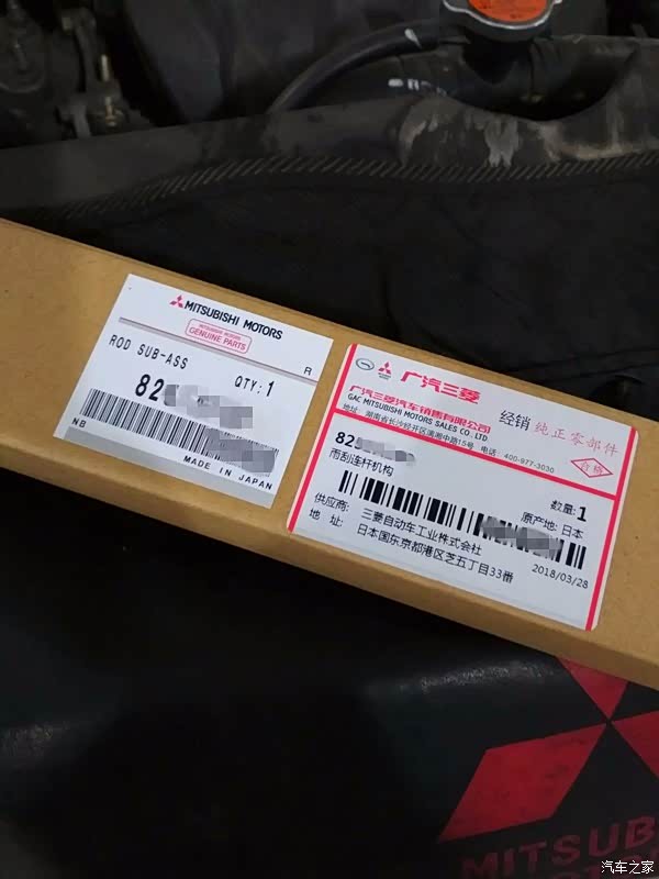 2018年4月23日继续上来更新,天气:雨。进店清洁空调并进行“雨刮连杆机构”召回活动,这个机构原车件直接拆下返回厂家,更换的零件是日本原产的,请看外包装图片(部分位置已打码)。四年半的车第二次进店清洁空调,维修师傅非常认真在清理中,请注意师傅正在清洁的原车零件是三菱重工制造的,上面标明MADE IN JAPAN.这里要特别感谢威海三菱4S店谢主任和谢师傅。清洁图片请往下看(红米手机拍的,大家凑合着看吧...):