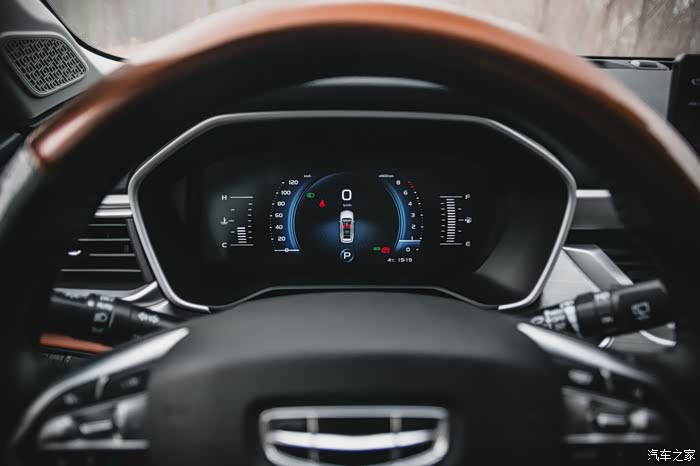 7英寸仪表盘配备了全液晶显示,在驾驶中会根据不同的模式变换时速表颜色。这虽然看上去有些“花里胡哨”不实用,但效果足够一流时尚,这也说明了吉利越来越注重细节上的表现。