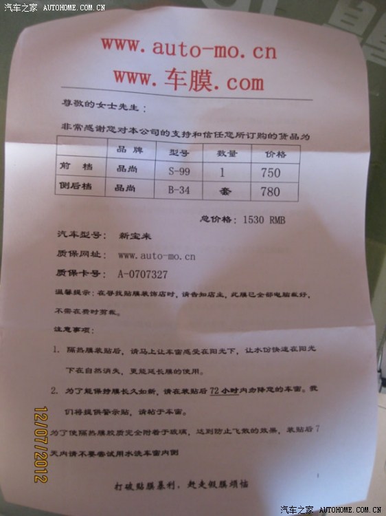 其实仔细想想我根本就没书面定过车,只是电话沟通而已,还好销售小妹人不错,帮了很多忙。