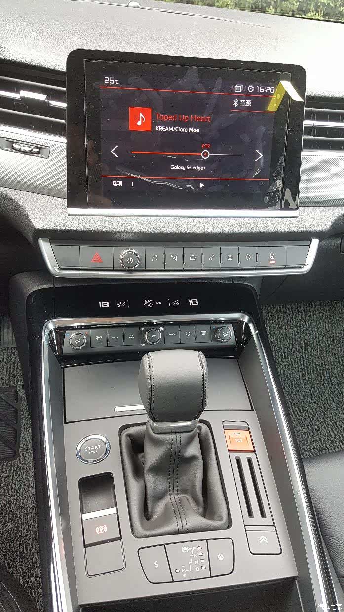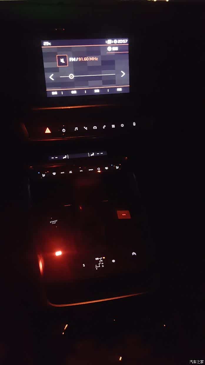 口水标志新车的电子档杆,这个跟c6一样的档把无数人吐槽了,品相和握感不好,上面的缝线歪歪扭扭,可能是厂家为4代c5做了准备,sos按钮布局不合理,容易误触,下面的卡槽纯粹浪费空间