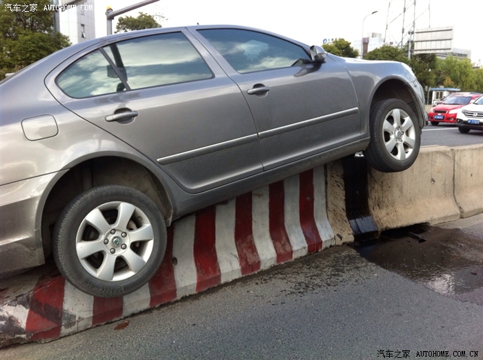 在宜山路靠近虹许路中环的地面道路上,前面一辆路虎极光犹犹豫豫左摆右摆,开的也慢,由于受到前车的影响,没有右侧视野。加上这段路不熟,结果在快过路口的时候想变道出来,哪知正前方是水泥隔离栏,直接骑上去了。。。。。