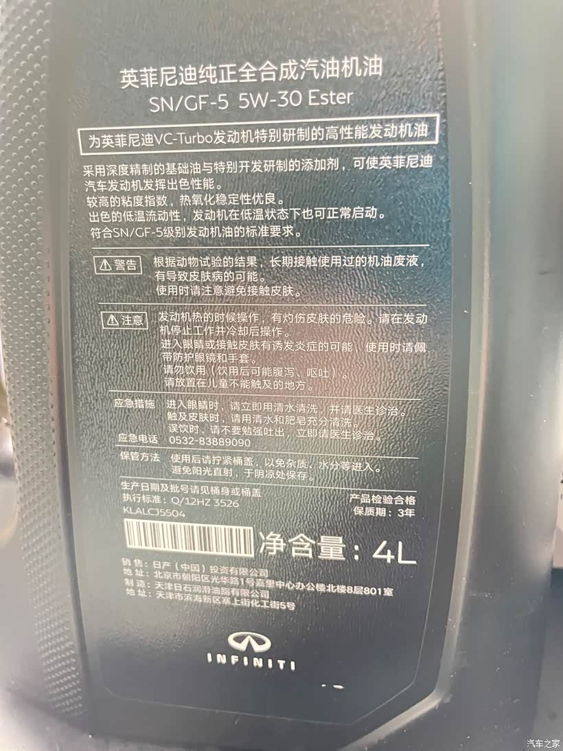 免费保养赠送的机油,搞不清楚是哪里提供的基础油,凑合用吧,反正半年或者6000km就换油
