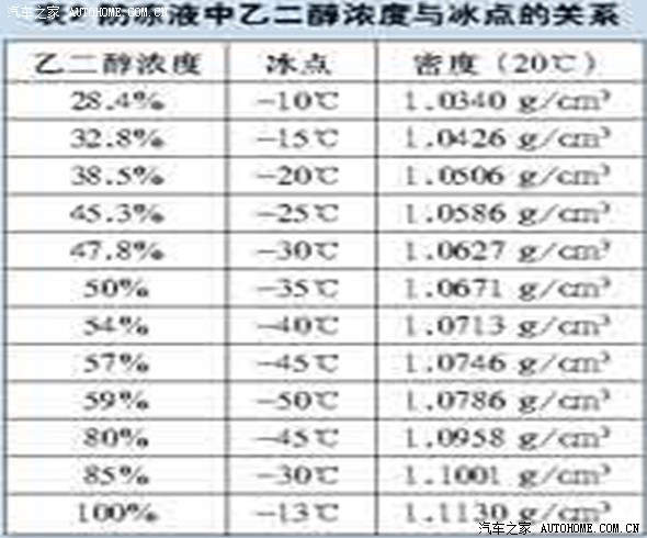■冰点越低越好防冻液的基本指标是冰点与沸点。在秋冬时节应选择使用低冰点的防冻液,冰点越低,防冻液的抗冻性能越强。通常情况下,所选用防冻液的冰点应低于当地最低气温10℃以上,以备天气突变。