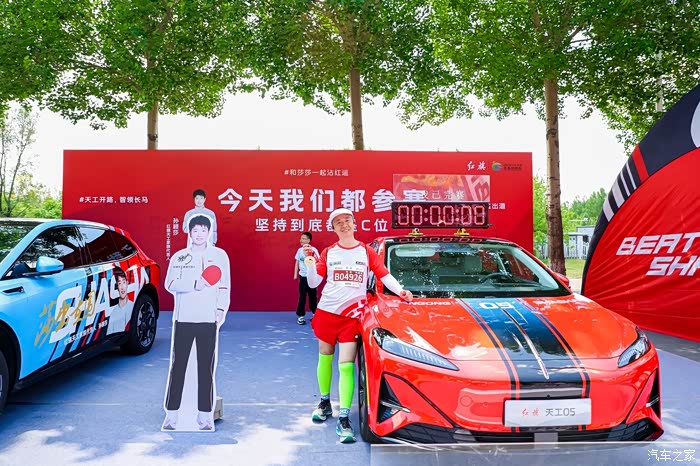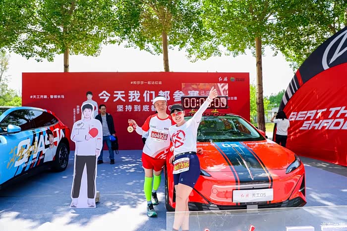 最后,在比赛开始前大家都会跟它来一张合照纪念一下,一是纪念这场赛事的回忆,二是纪念一下和红旗春天的约定,三是留念一下和跑友们一起和天工05的合照。