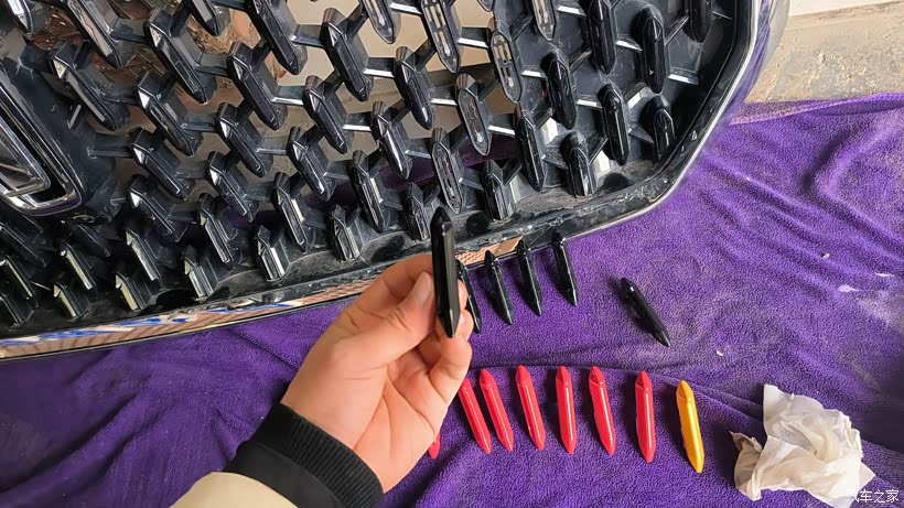 喷漆前特意看了二十遍教学视频,结果实际操作时还是翻车了。第一遍手抖得像帕金森,漆面厚得能刮下来当贴纸;第二遍距离太近,流漆现象让中网变成了"泪痕妆";第三遍调整手法,采用"蜻蜓点水"式喷涂,终于搞出了均匀的磨砂质感。