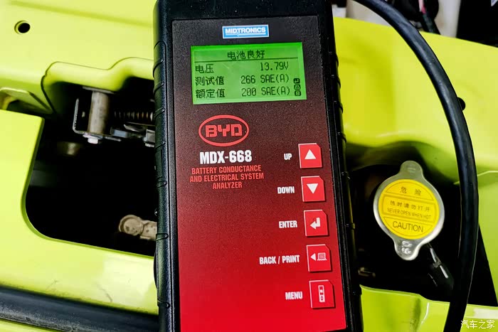 【所需工具和材料】所谓15分钟轻洗服务,原来就是将机舱内擦拭干净以及用高压风吹掉尘土,维修工单上标注的单价金额200元,这也太无语了,不过实际金额为0元,呵呵。海鸥的二保没有使用其他材料,只是用到了各种检测工具:包括高压风枪、胎压计、电池测试器、检测电脑等。纯电动车除了动力电池包以外,也配备了一块传统的铅酸小电瓶,作为车辆启动、灯光、娱乐系统等用电所需,所以跟燃油车一样,也需要保持充足的电量。