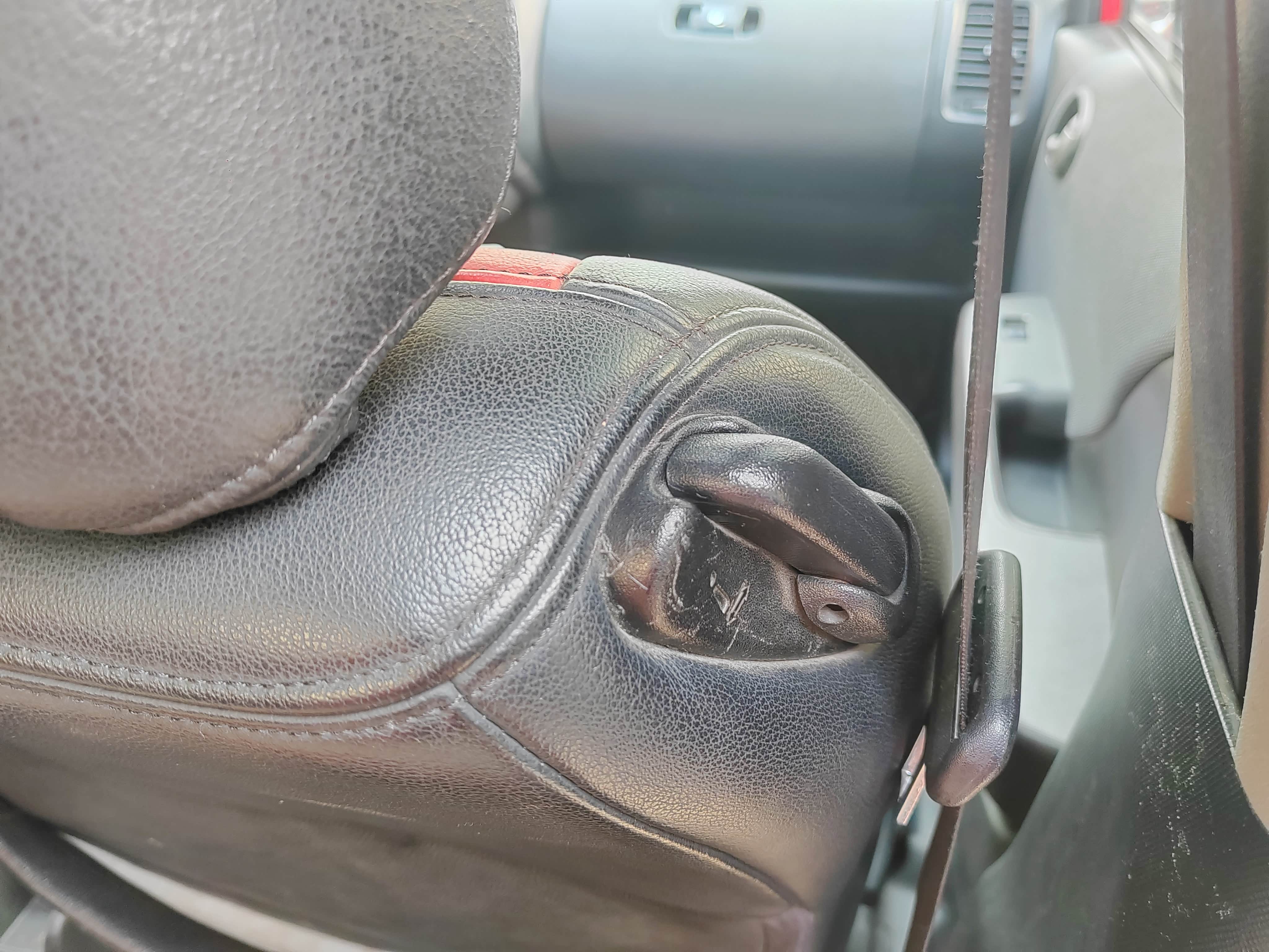 可能你觉得座椅到这里就差不多了,不过并没有。在副驾靠背的侧面有一个从没有在其他车上遇见的扳手。而这个小配置的打开方式却也很有仪式感,你需要先向座椅外侧抬起再向前,期待着这个动作后会有什么神奇的事情发生,没想到座椅的前后轨道就这样被解放了,这是老板键!你能想到在一台20年前发布的A0级车上出现它吗?反正我的下巴是许久才回到它正常的位置。更有意思的是:正驾驶座椅上,也有。