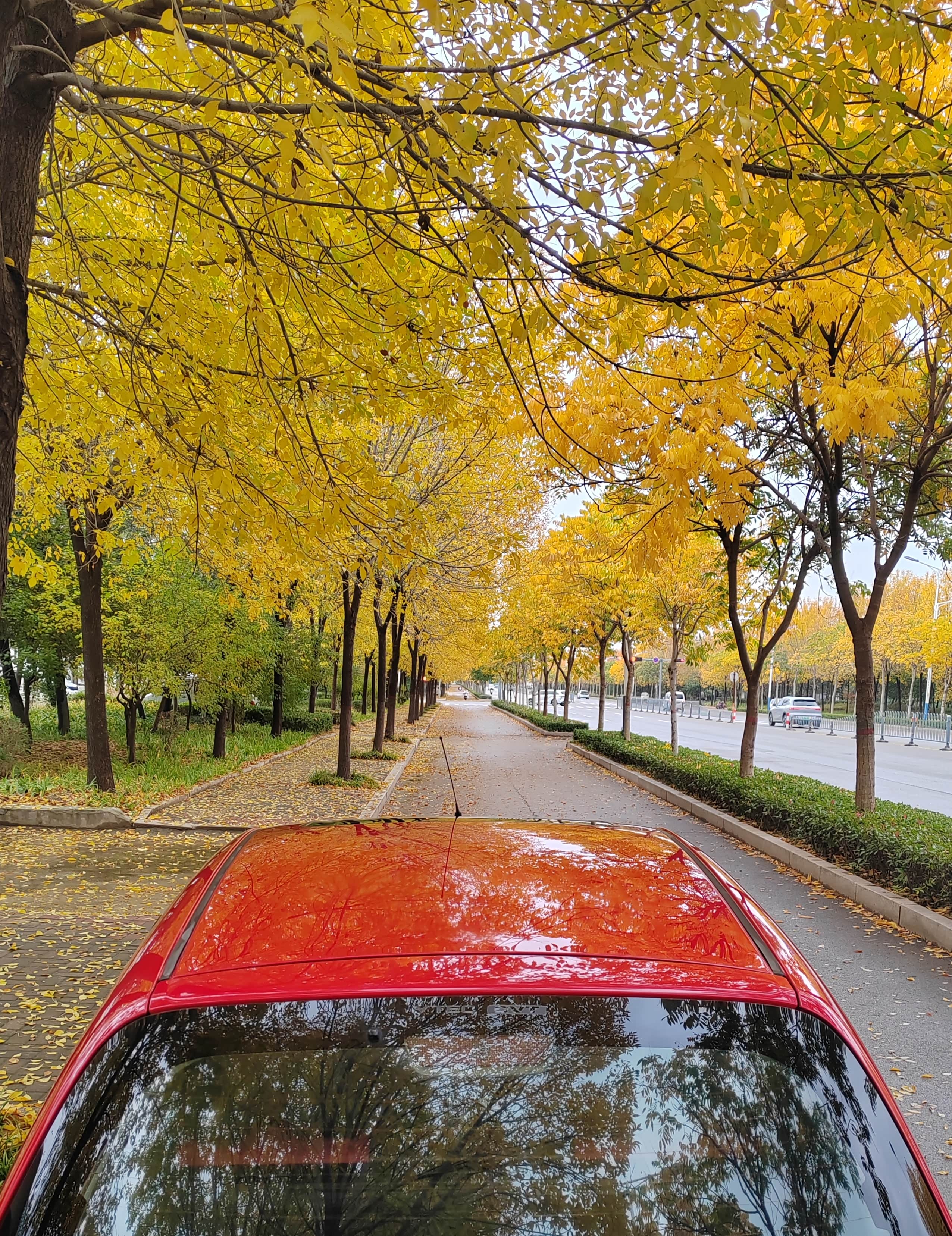 一叶一眷恋,一秋一诗意!与“田宫手办”同色的车漆,在一片金黄中好像是那么应景。