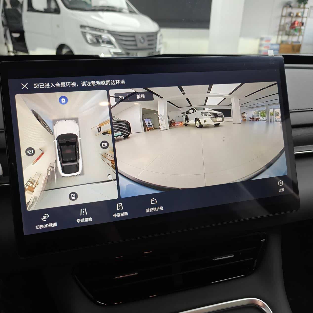 中控大屏正开着全景影像,能切换2D、3D视图,清晰度挺高,屏幕尺寸大,开车的时候扭头瞟一眼就能看清。