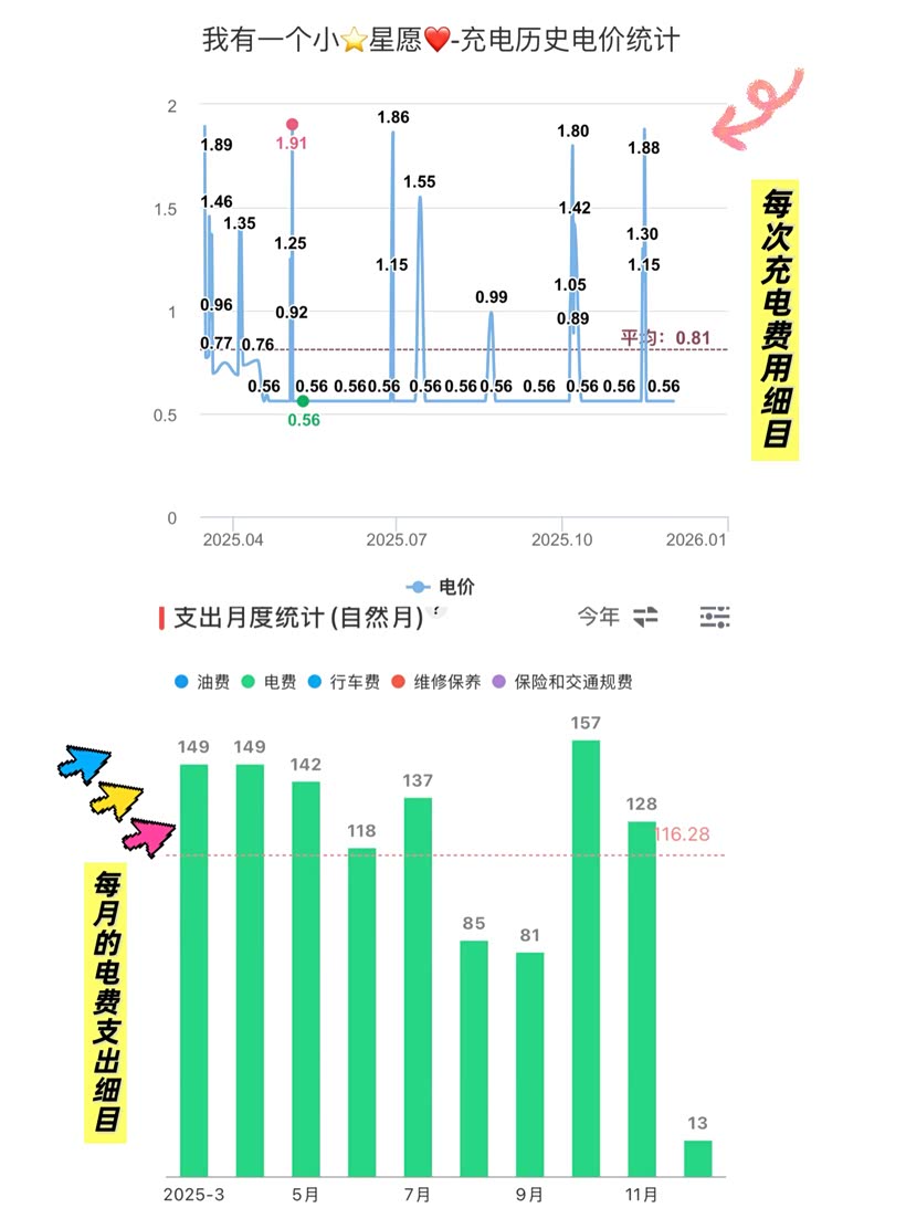 作为一个精打细算的女生,记录用车成本是我一直坚持的好习惯——每次充电都认真记录!别小看这一步,坚持下来,你的用车成本直接一目了然,推荐给车友们也要养成这样的好习惯!