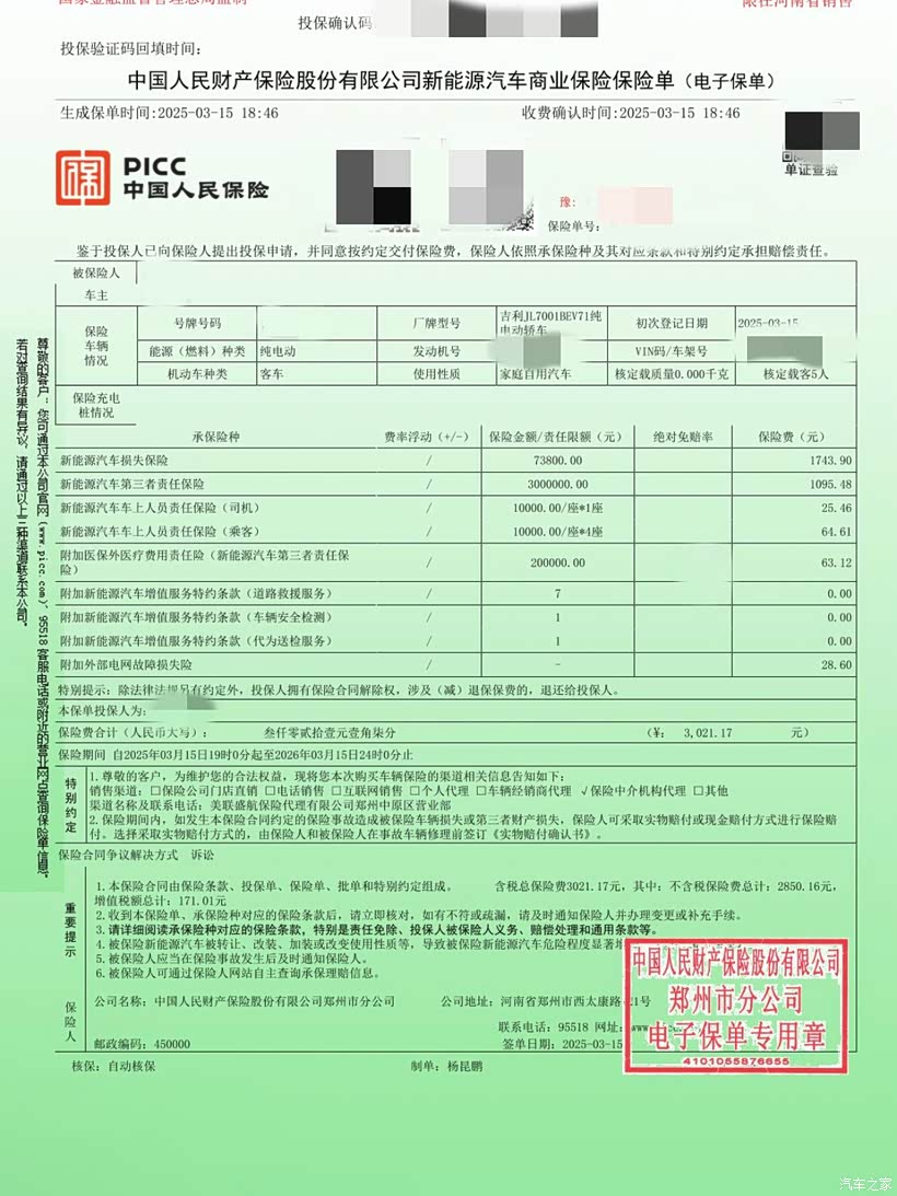 新车买保险通常在4S店办理,当时我们收到了多家保险公司(人保、人寿、大地、平安)的报价。尽管人保的价格在四家中相对较高,但因家中的两台车辆长期投保人保,服务体验一直不错,我还是毫不犹豫地选择了它。