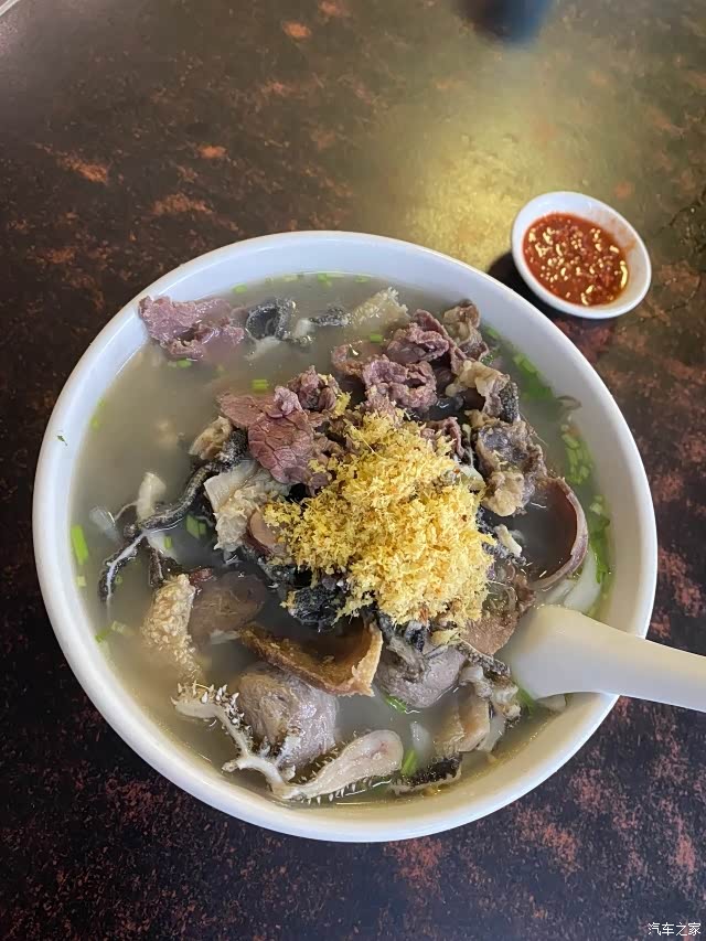 到了午饭时间,来品味本地特色美食镇记牛杂粿条汤。