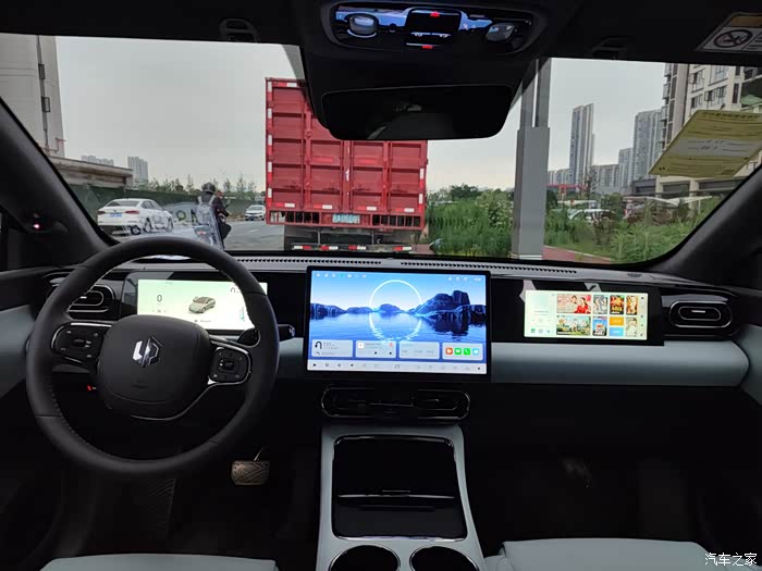 2.内饰评价:四颗星,整体用料质感还是不错的,该软的地方都用了皮质包裹,开门也是按钮式的,看起来也是有一定档次。三块大连屏也是科技感豪华感满满。