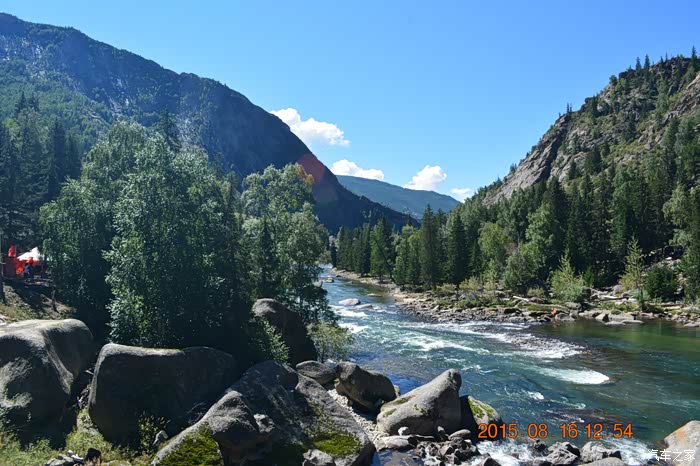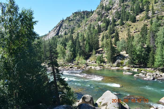 第8天 8月16日 天气 晴 富蕴 — 北屯 — 福海 行驶里程331km 游览了可可托海风景区。可可托海风景区即可可托海国家地质公园,位于新疆北部阿勒泰地区富蕴县境内。景区主要由卡拉先格尔地震断裂带、可可苏里、伊雷木湖、额尔齐斯河及额尔齐斯大峡谷等组成,集优美峡谷河源风光、沼泽湿地景观、寒极湖泊、地质矿产资源等自然景色为一体,融合草原游牧文化、西域民族风情、地域特色民俗等人文景观,以观光旅游、休闲度假、特种旅游(徒步、摄影等)、科学考察等为主要特色的国家4A级旅游景区、国际原生态旅游景区。我们根据自己的兴趣只游览了额尔齐斯河及额尔齐斯大峡谷、 神钟山 、可可苏里。额尔齐斯河水流湍急,位于额尔齐斯大峡谷中的神钟山犹如巨神插足碧水绿荫之间,头枕蓝天白云,显得巍峨神奇,变幻莫测。