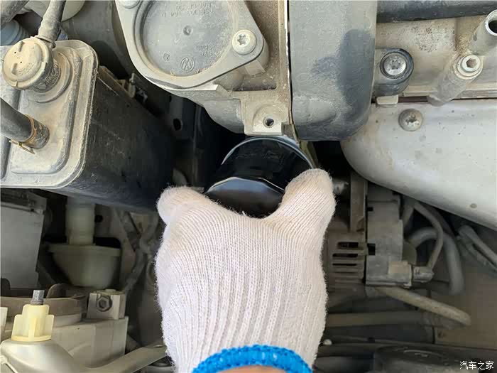 随后顺时针安装新机滤。