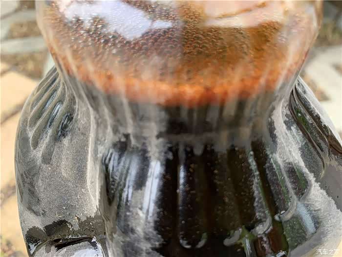 看看抽出来的废油还是非常脏,上次更换的全合成机油清洗效果还是不错的。