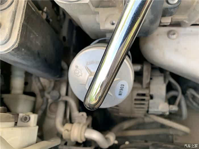 下面开始拆卸机油滤清器。