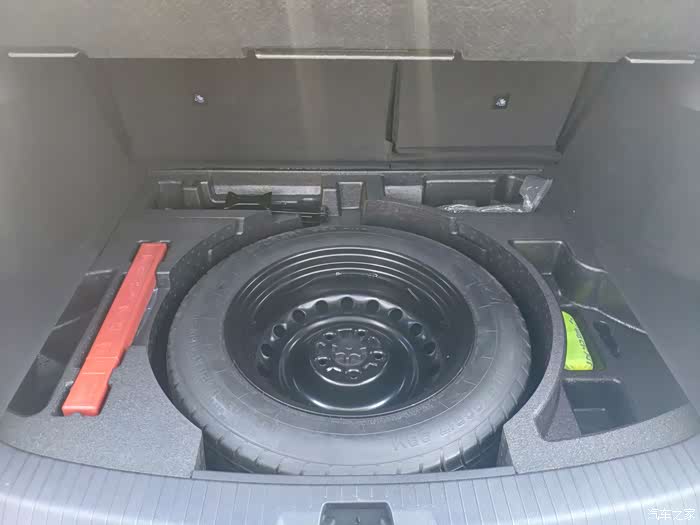 拿开后备箱的盖,下面装有备胎以及拆轮胎工具的位置,都整齐的放容易分辨