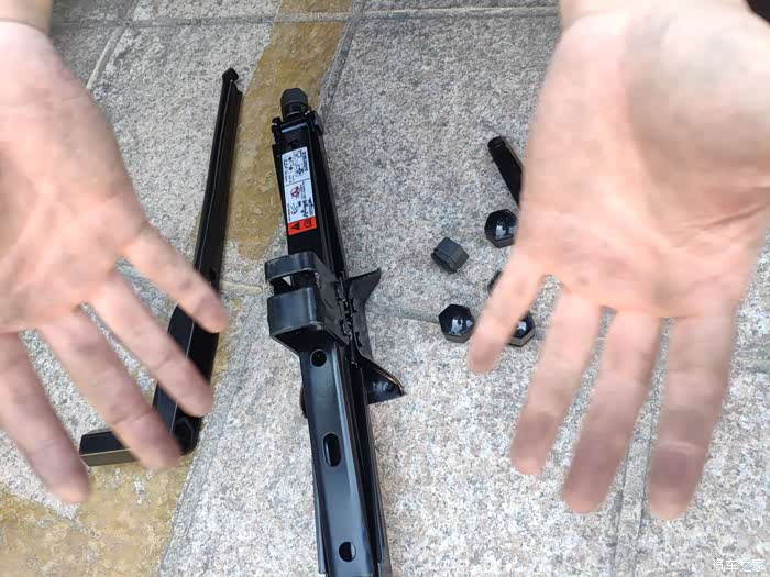 顶到车子时我们就用配的工具扭不然手扭不来的