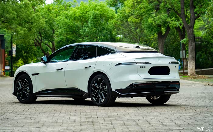 黑色车顶像绅士礼帽扣在雪白车身,小鸭尾一翘,微微上扬的弧度像在跟空气调情,层次感分明运动感还是非常强还得是阿维塔是懂现在购车人群