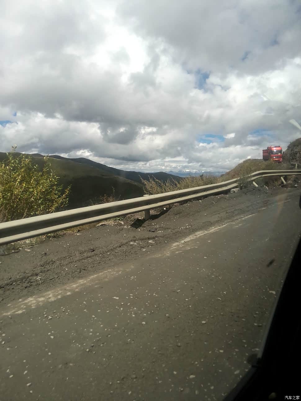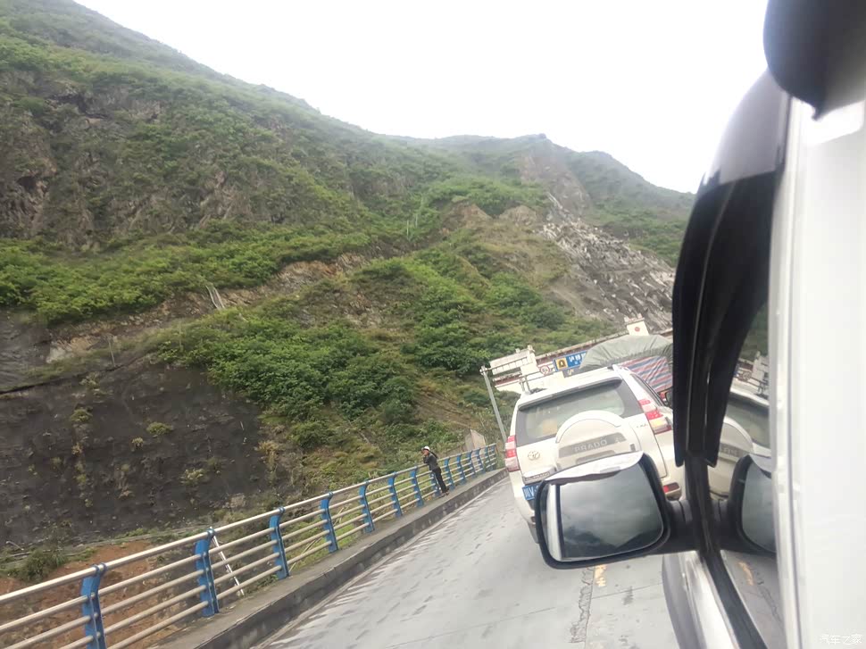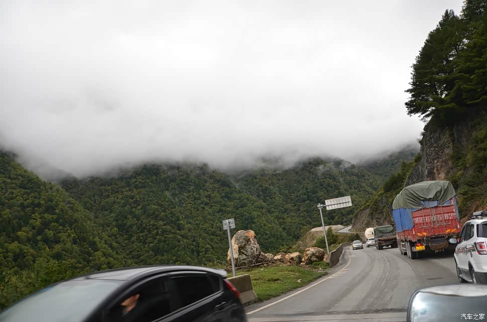 了, 大家能看到的照片里,车子右侧是山,伴随着雨水冲刷山体,不断有石头滚落时不时敲打着我们的车顶,好像在提醒我们我们是在走川藏线