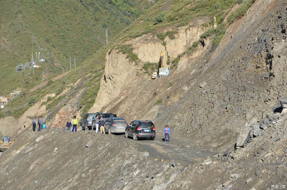 了,等明天天天亮了在寻求帮助,可是又害怕运气不佳遇到滑坡~~~没办法,我们把车倒着挪到