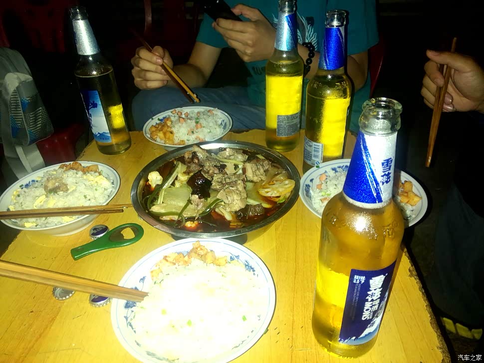 每天晚上都喝酒,饭菜无所谓,酒得有,不管白的啤的、不论海拔高低,不让喝酒就嚷嚷着这个