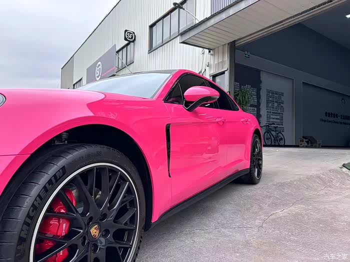 到手就贴了改色膜,甜菜根紫,跟718那个玫红很像,老婆指定要改这个色,我权当它是猛男粉了。