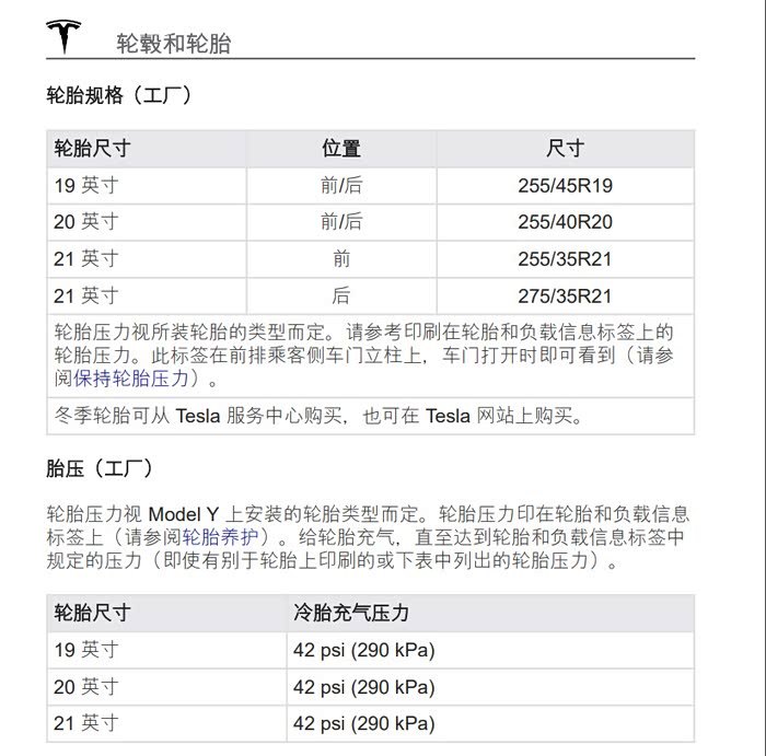 等车闲来无事,查了model y车主手册的轮胎轮毂说明