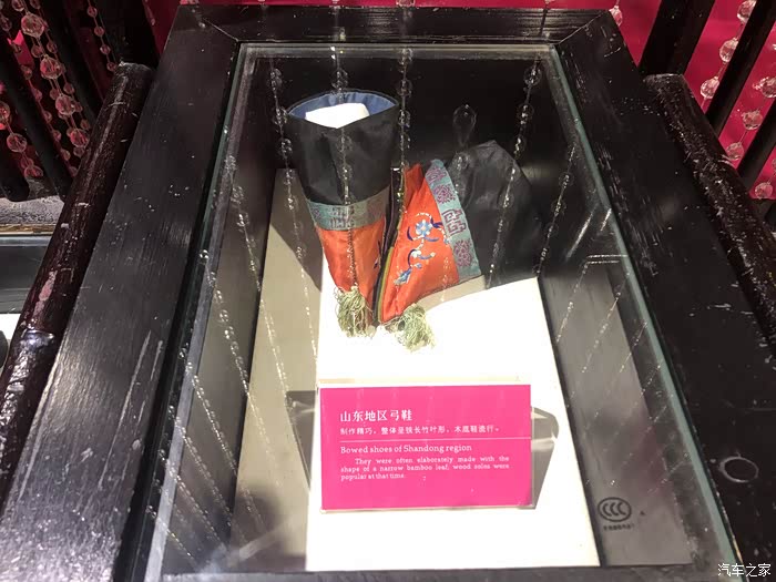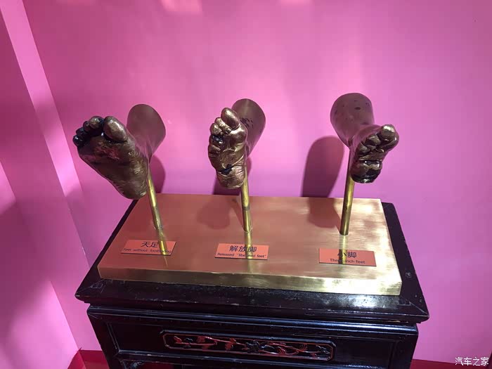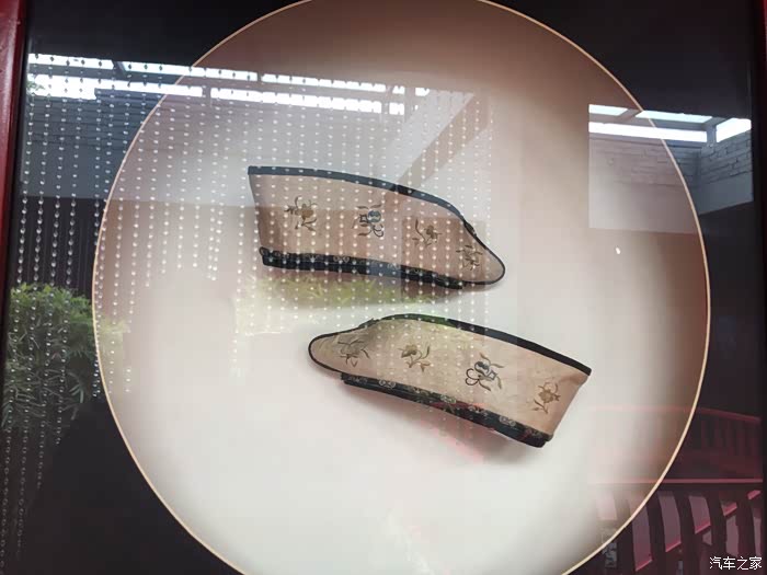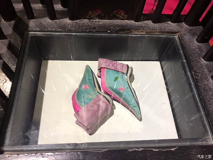 馆内粉灯光晦暗,颜色刺心,一双双已经褪色的三寸金莲鞋看着叫人一阵阵反胃。我比试了一下,短的可能只有10公分,长的超不过15公分。
