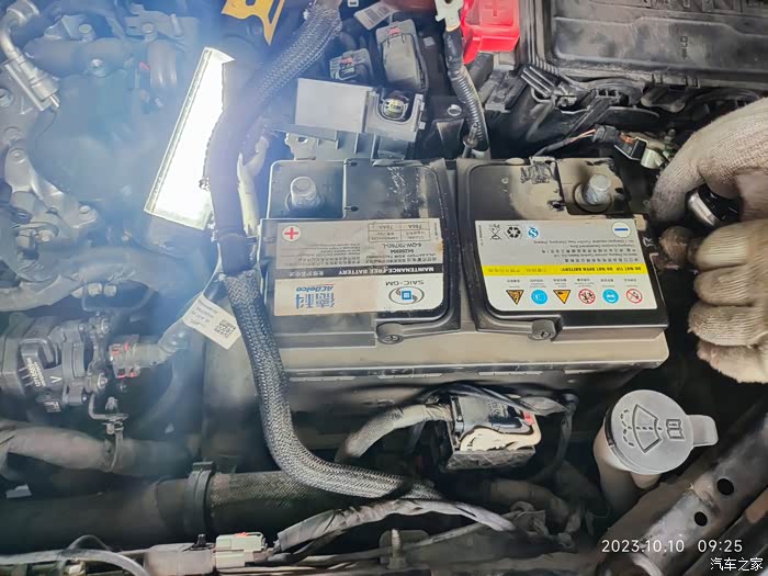 顺便看下原厂的电瓶,4.3万公里应该要换了