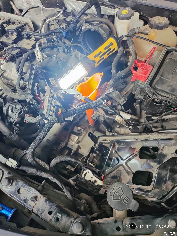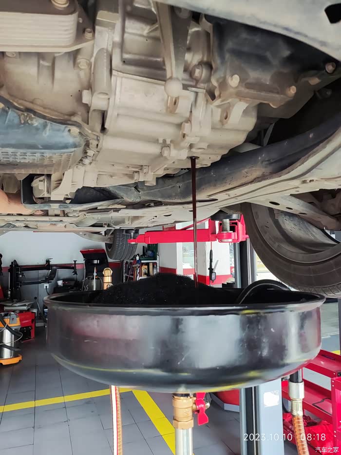 放掉旧油,因为4万公里换过一次,所以这次比较干净