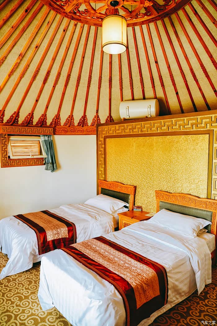 格根塔拉旅游景区有大概一百二十间酒店帐篷房间,每年的八月中旬,这里会举行一年一度的那达慕大会,那时酒店房间会供不应求,这次我们来格根塔拉幸好是在那达慕大会之前来此游玩,不然很有可能陷入没有地方住的窘境。看看蒙古帐篷酒店的样子吧,房间外观是地地道道的蒙古包的样子,内部确实按照星级酒店设计和布置,完全满足了游客对于住宿的硬性需求。如果想来格根塔拉草原参加那达慕大会的朋友,一定要提前预定提前预定提前预定,不然只能开车回城市,这里的住宿很有限。