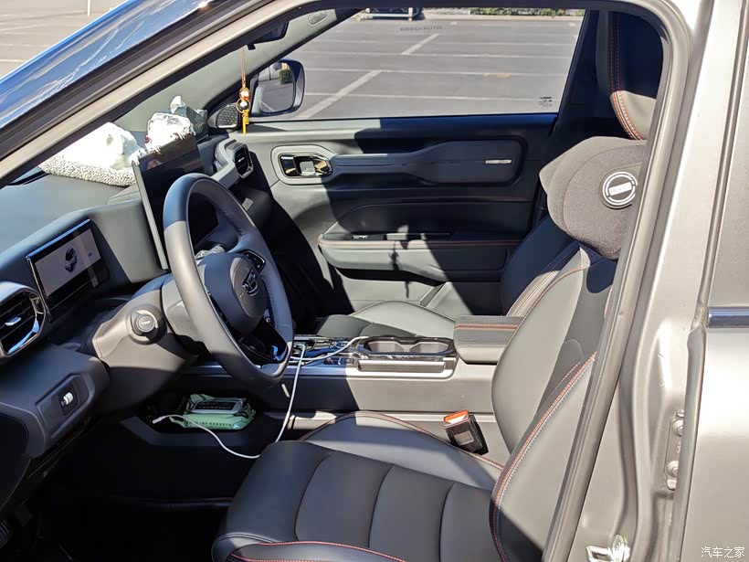 后面逛到吉利4S店,进门就被展厅里的牛仔吸引了,火山灰的磨砂车漆质感十足,车身线条硬朗,轮眉处的黑色包围、车顶的行李架还有车尾的小书包备胎罩,都带着点越野气息,完全长在年轻人的审美点上。坐进车内,虽然内饰塑料件偏多,但颜色搭配协调,大屏尺寸够大,上手操作也简单,不像有些车型的车机需要反复琢磨。