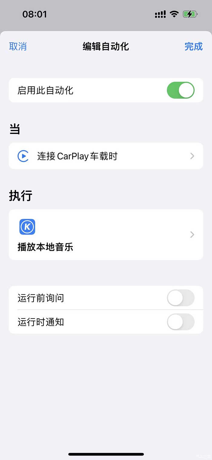 不过一般都是用carplay,手机上用快捷指令设置个自动化,上车连接carplay自动播放酷狗音乐,很方便。