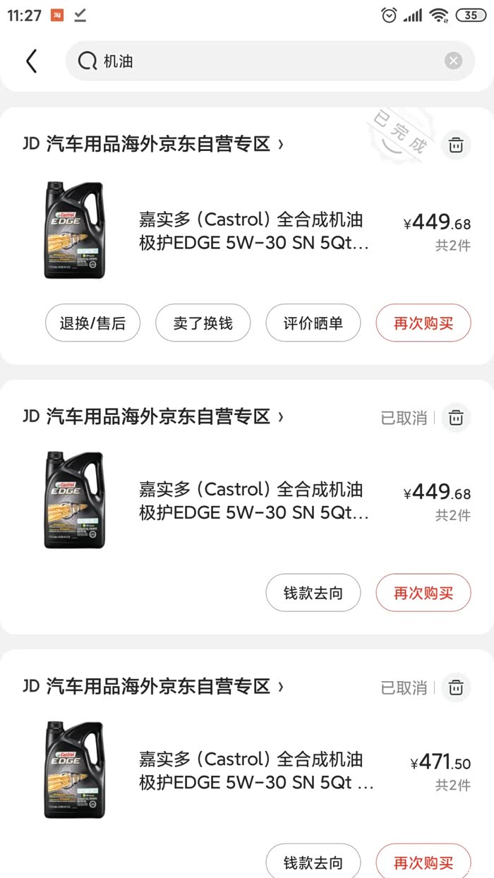 慢慢的在我的蛊惑下。身边的几个朋友尝试了一下,京东的机油。也回不去了。所以经常会趁着活动的时候一次性买个3,4瓶5,6瓶。