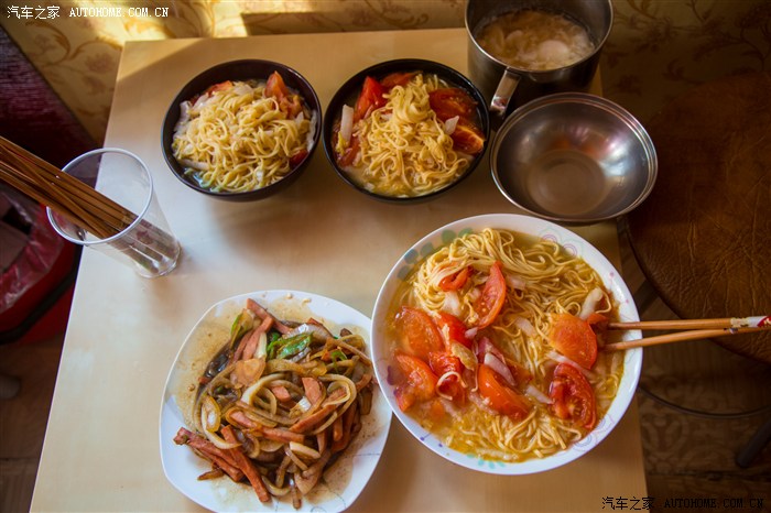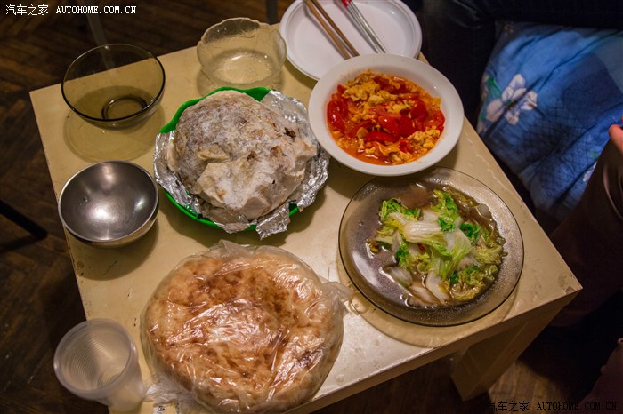 夜间12点了,姐姐的同学给我们做了些吃的,虽然想吃,可是却吃不下。是因为吃了3顿飞机餐么...