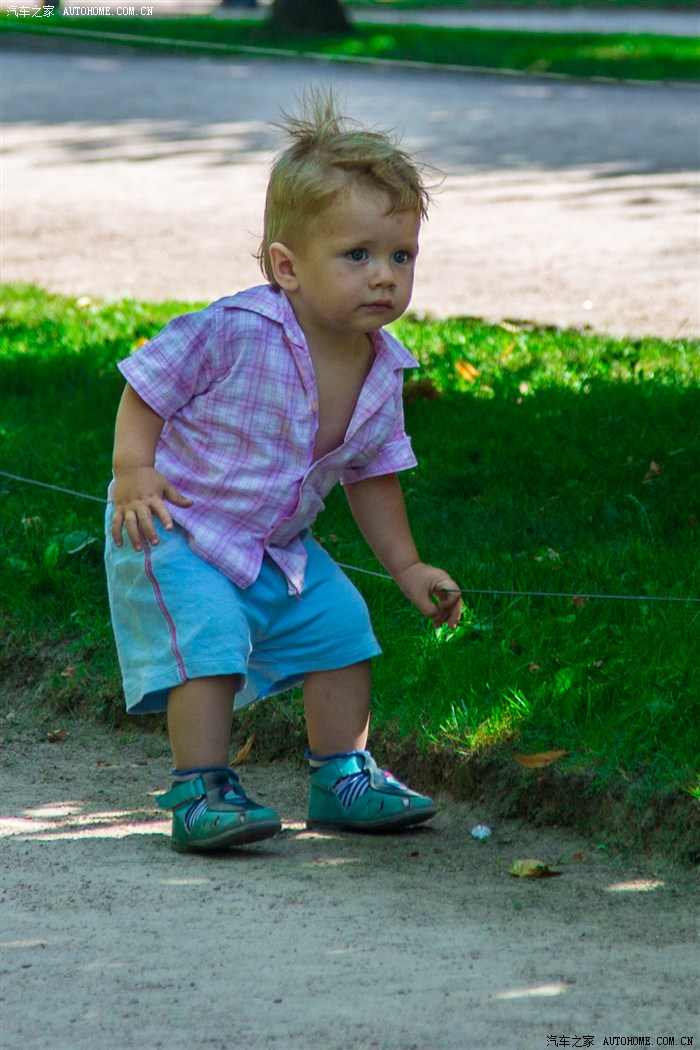 超级可爱的小洋人,一个劲的在路上乱跑,一看就是才学会走路不久。
