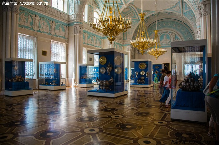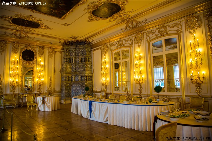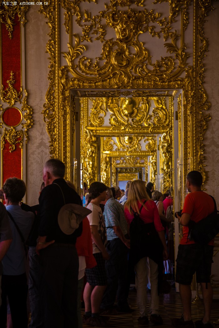 过了大概一个小时,雨稍微小了点。早上来的时候,宫殿门口拍了很长的队伍,所以当时没有打算进宫殿。看看时间下午四点多,又在下雨,应该排队的人会少点了吧。排了一会进入主宫殿,要买票,350卢布一张。宫殿里有各种厅堂的展示,最有名的就是琥珀厅了,整间房间的墙壁上粘满了琥珀。二战时候,这边几乎被摧毁殆尽,后来逐步复原。