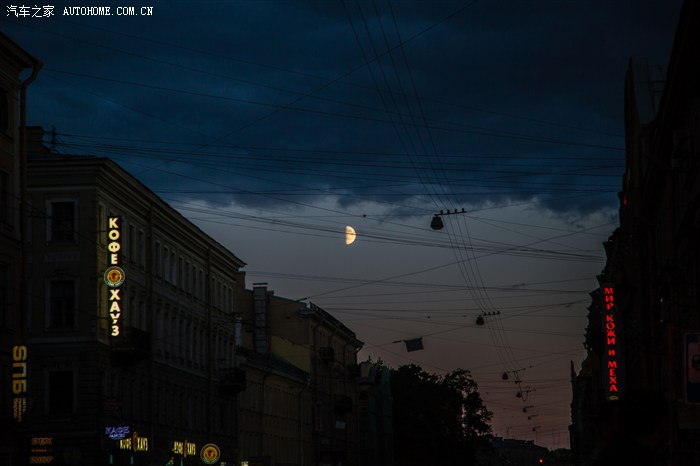 其实当时天没那么黑,在圣彼得堡呆了那么多天,还是第一次看见月亮。