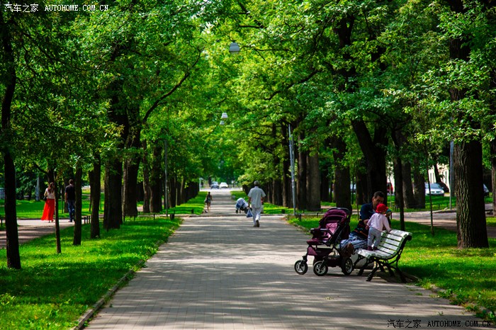 去看叶卡捷琳娜二氏的皇宫要坐汽车过去,不过我们还是卖力的用上了11路,走了半个多小时。沿途风光很漂亮,俄罗斯的夏天到处都是森林的状态。