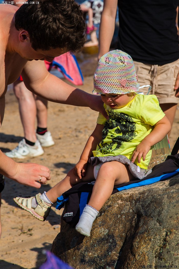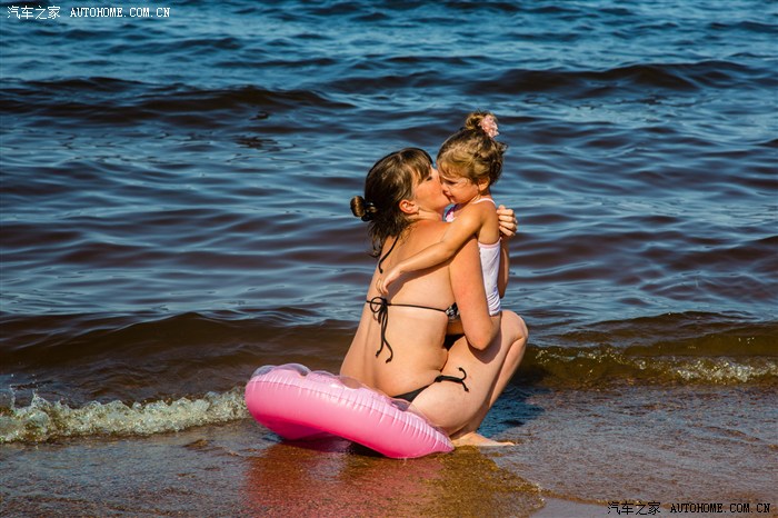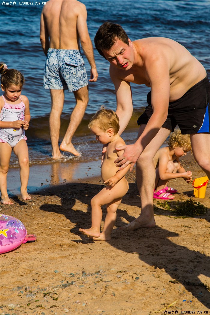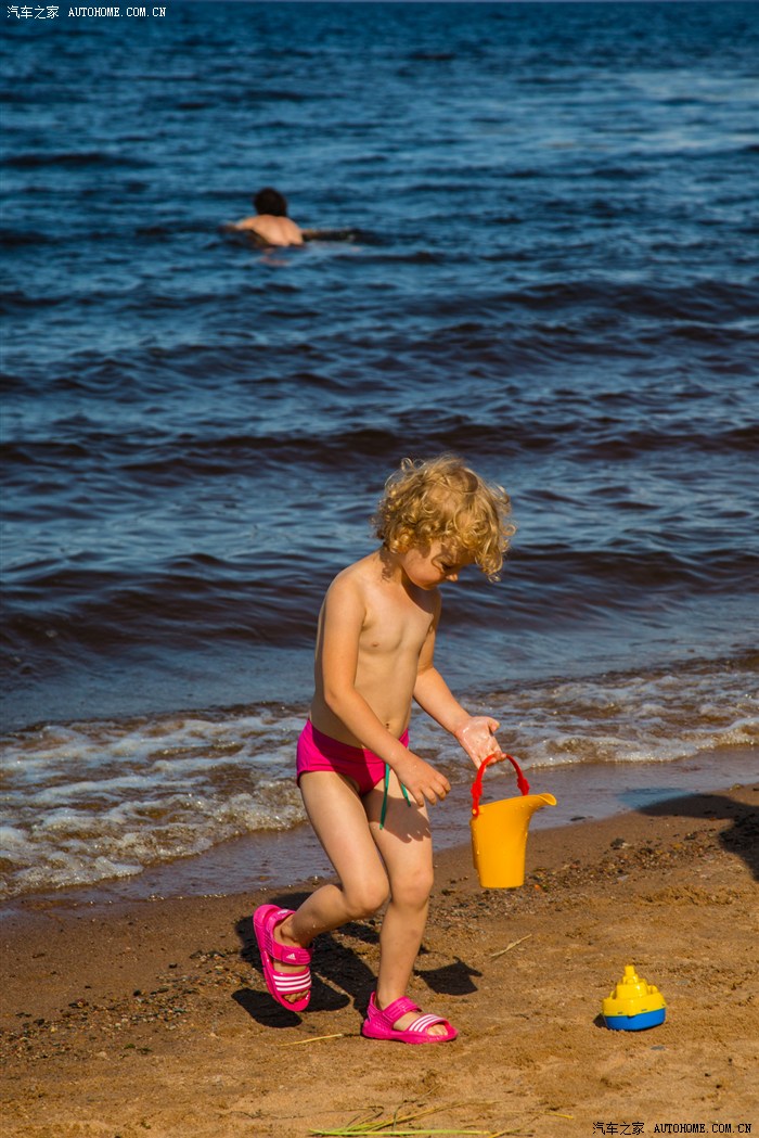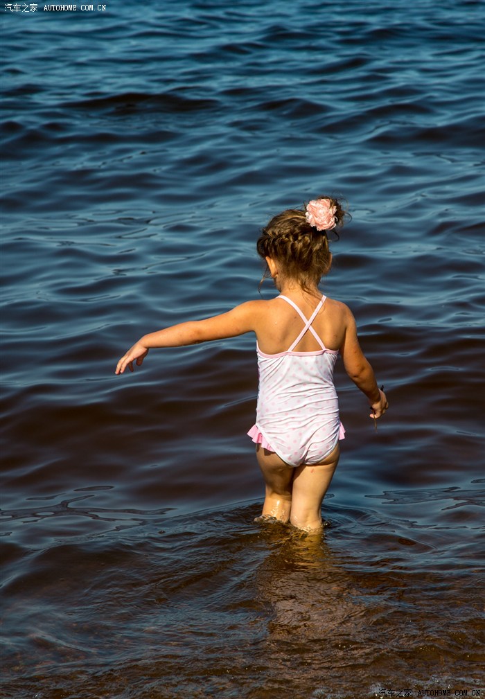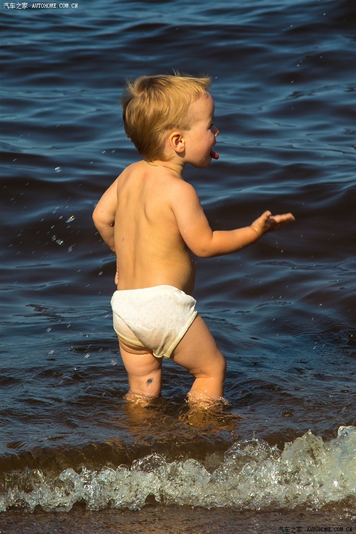小女孩的泳衣一般就是裤头,这小洋人的爸妈一直在沙滩上晒太阳,根本不管她的,她一会滑沙,一会弄潮。哈哈,可爱死了。