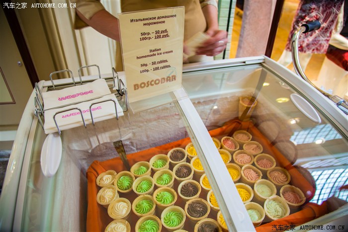 在俄罗斯,对于吃饭是很没时间观念的,下午2点多我们才吃了中饭。饭后甜点在商场里买了冰淇林,100卢布一个。除了巧克力和原味的,其他都不太好吃。