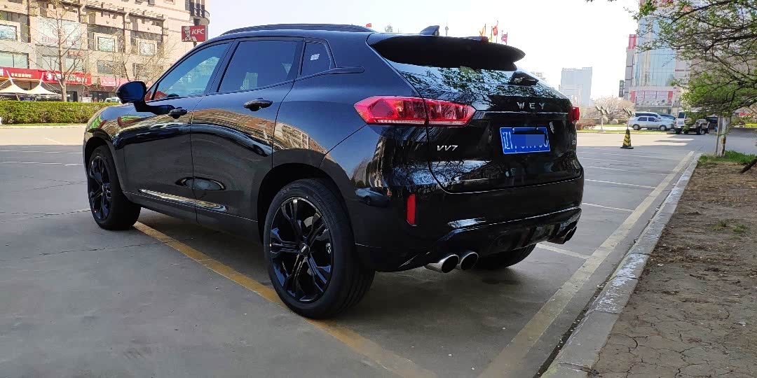 车轮几乎把在车身的四个角上,这是因为vv7悬垂设计的很短,特别是后悬非常短,再加上车头的比例很长,整个看起来是凸显出一个后驱运动型平台,但其实是一个横置发动机前轮驱动车型。暂时目前没有四驱版本