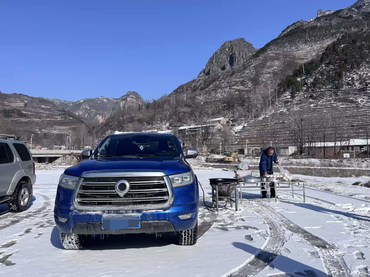 脚下的积雪不算很厚,踩上去发出 “咯吱咯吱” 的声响,深吸一口带着松针清香的冷空气,浑身都通透了。回头看停在雪地里的长城炮,硬朗的车身线条在白雪的映衬下更显霸气,货箱上积了层薄雪,和锃亮的车漆形成鲜明对比。