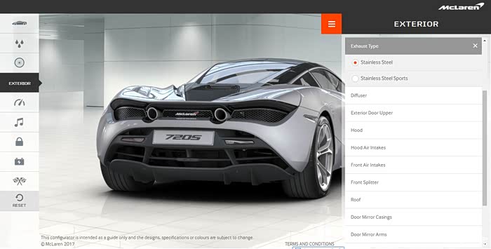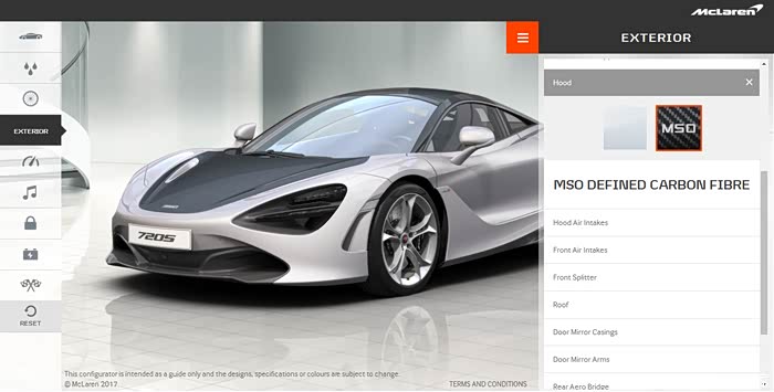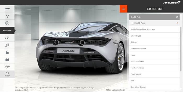 进入官网后,找寻到720S的介绍页,就会有车辆配置器选项