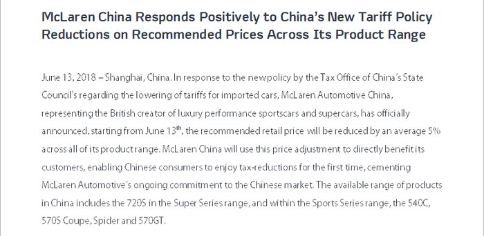 新款迈凯伦运动系列跑车570S Spider和迈凯伦超级系列跑车720S即将于年内,以进口形式引入中国,旨在助力实现迈凯伦在2018年实现中国市场销量翻番的目标。
