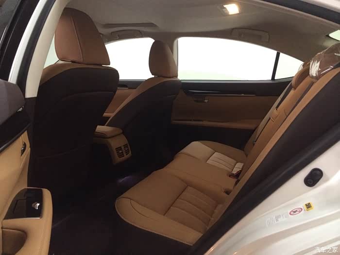 重点来说说这车的内部!雷克萨斯ES的内饰真的是让我跟它一见面就爱上了,简约般的奢华!简约般的典雅!特别是我选的这个黄水晶棕色,真的很好看哦!方向盘握起来非常舒适,操作起来灵敏、轻松。流线型的仪表台设计也是略有特色,精致的钟表也为这设计增光添彩,更加显得高端大气上档次呀,哈哈哈!做工非常精细,整体布局也很合理,每一个位置都设计得恰到好处!遮阳板上的化妆镜,只要把镜子盖推开,专属于此化妆镜上的小灯就亮了,把镜子盖盖上,灯就自动关掉。夏天空调很凉爽,能够自动变换内循和外循,这点很人性化。定速巡航也是杠杠的,在销售员的推荐下加装了360行车记录仪,对于左转右转倒车而言都是更加的方便,视线更加全方位,也更加安全。前排中央扶手里面储物空间挺大的,置放小物品都不是问题。另外呢,座椅非常舒适,座椅的电动调节也很方便。前排空间够大,视野也很赞哦!就算把前排座椅调到最往后,后排座椅依旧宽敞,一点都不会觉得局限了。后排座椅中间可以把中央扶手放下来,扶手前端一按,就可以放置两个杯子。扶手盖一打开,里面又可以放置物品,很实用。后排过道中间没有隆起的部分,所以还是不错的,空间真的很大。车内天花板的灯,轻触即亮,再轻触即关。